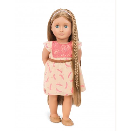 La poupée Portia d'Our Génération est une poupée de 46 cm, aux cheveux châtain clair, aux yeux bleus et à la peau claire.