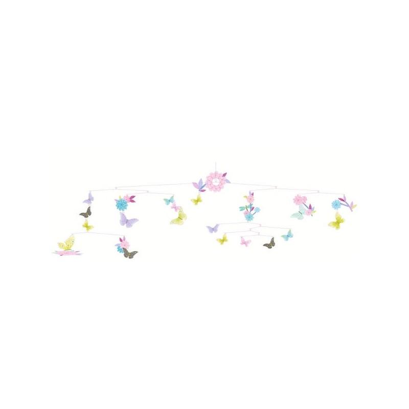 Dimensions du mobile: Longueur: env. 70 cm, Hauteur 40 cm. Matériaux: structure du mobile en tige métallique, décors en papier, fil de nylon Design: Christel Sadde Illustrations: Elodie Nouhen