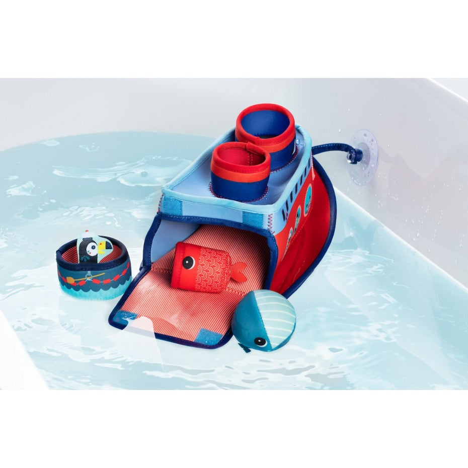 Tout le monde à bord ! Marius le capitaine lève l’ancre et prend la mer. Votre bambin imaginera de folles aventures avec ce navire. Grâce aux nombreux accessoires, volets et hublots, la motricité fine est fortement sollicitée. Plaisir aquatique garanti !