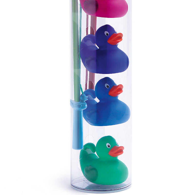 Ce tube est composé de 2 cannes à pêches et de 6 canards rigolos aux couleurs de l'arc en ciel. Avec un peu d’habileté et beaucoup de fous rires, les pêcheurs en herbe vont bien s’amuser!
