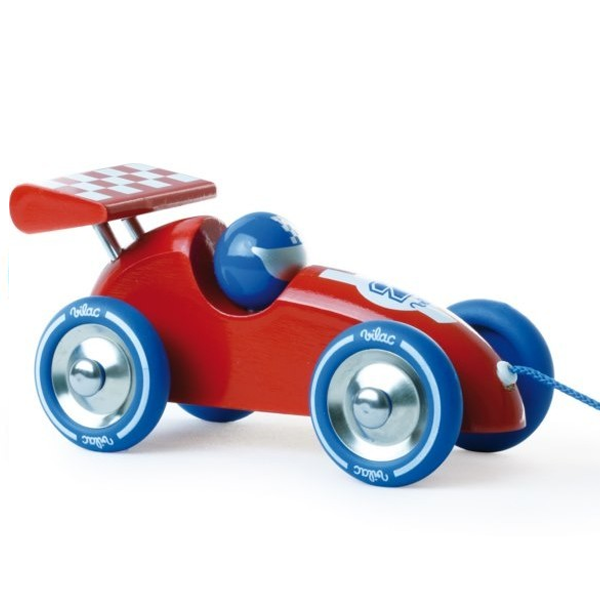 Ce jouet sera adoré par tout les fans de voitures et de courses. Le numéro 2 bleu sur une carrosserie rouge est sur la ligne de départ et c'est à votre enfant de faire gagner ce pilote de courses grâce à une ficelle que votre petit tire pour faire avancer le jeu. Cette voiture peut aider et accompagner bébé dans ses premiers pas.